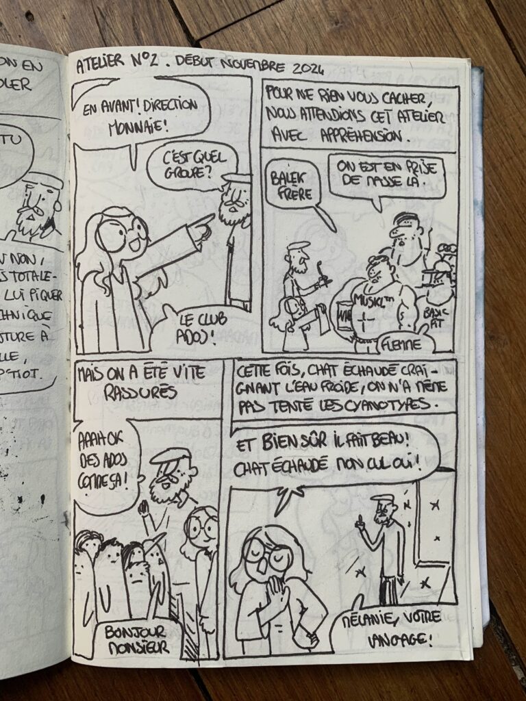 Non classé Résidence artistique – Journal de bord 4 12 janvier 2026 Strip précédent Bonne année tout le monde ! C’est le retour du journal de bord ! Encore quelques strips et on aura bouclé les aventures de 2025, on espère avant d’entamer bientôt les ateliers de 2026 !