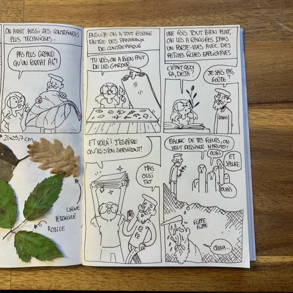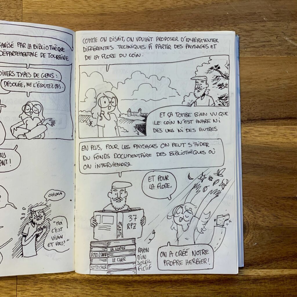 Résidence Résidence artistique – Journal de bord 6 novembre 2025 Strip précédent Aujourd’hui un peu de process ! On a déjà donné deux ateliers qui se sont très bien passés ! Le troisième sera bientôt. Bien entendu, on vous racontera ça dans le journal de bord, ça va venir, un peu de patience bande de petits chenapans.